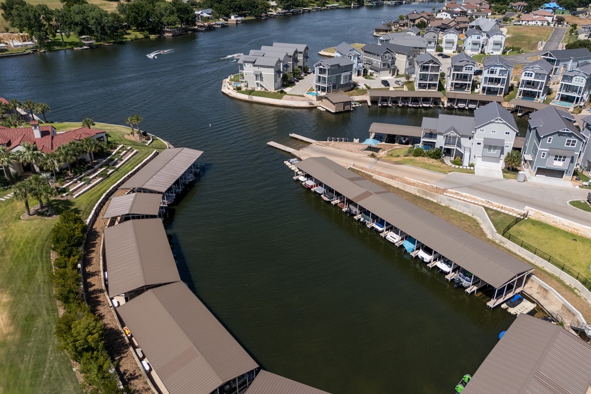 With its prime lakefront location, you'll have seamless access to the water, including a private boat slip for your convenience. Enjoy a day on Lake LBJ, perfect for boating, fishing, and water sports. In the evening, relax in the outdoor lounge space as you take in the serene lake views and starlit skies.