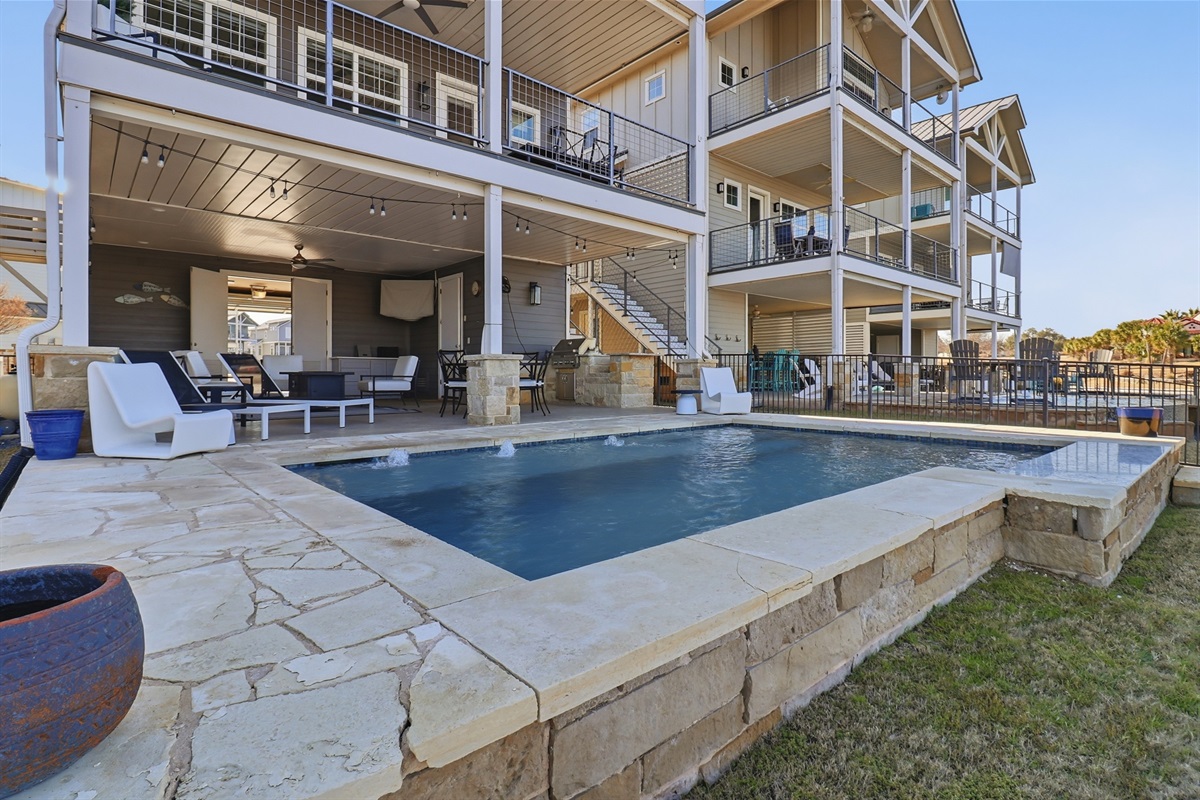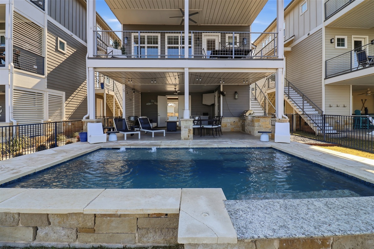 3 Bedrooms • 5 Bathrooms (3 full, 2 half) 5 Baths (3 full, 2 half) • Sleeps 1-8Welcome to GiGi's Jewel in Clearwater, a luxury lake house, your ultimate retreat for relaxation and adventure on Lake LBJ in Kingsland! This stunning property offers a spacious 3-bedroom, 4.5 bathroom home complete with a sparkling pool, direct lake access, and a short walk to golf, pet-friendly, and fantastic community amenities. You will feel like you are at a resort, enjoying both comfort and elegance in this exclusive gated community.